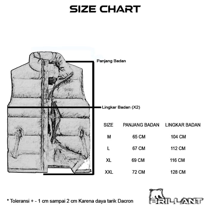 di lapisi oleh dakron 6Oz untuk membuat rompi Menjadi tebal dan Hangat ,tahan terhadap angin